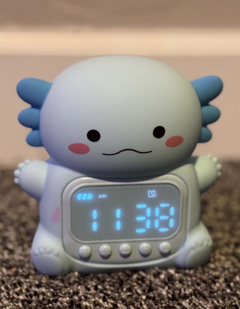 This last one I found on the Tik Tok shop. It’s a silicone axolotl alarm clock. With our oldest I thought it would time for him to start waking on his own in the morning. It’s soft and has an optional night light. You can set two alarms on it. It has worked great for us so far. Although I bought it on Tik Tok, I found the same one on Amazon which you can find by clicking here: Axolotl Alarm Clock